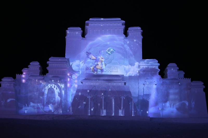 你除了能够观看真冰舞台上的精彩演出,还能够欣赏首个在极寒天气下的冰雪3D投影秀。玩了千百次的王者荣耀后,你可能难以想象到,游戏中熟悉的古长安城最高建筑——含元殿,会在现实中以巍峨的冰雪造型出现在你的眼前。而正是在这座美轮美奂的建筑上,一场3D裸眼大戏即将上演。
