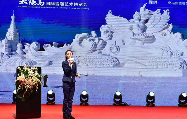 发布会上,来自哈尔滨冰雪大世界和太阳岛雪博会的代表分别就本届园区亮点、特色等做了推介。