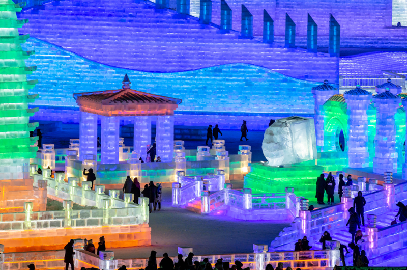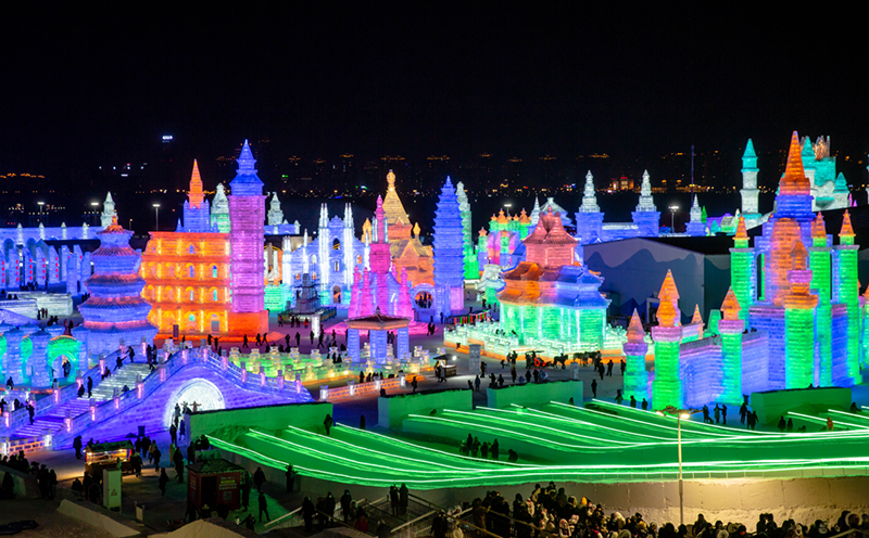 哈尔滨冰雪大世界始创于1999年,是由哈尔滨市政府为迎接千年庆典神州世纪游活动,充分发挥哈尔滨的冰雪资源优势,推出的大型冰雪艺术精品工程。走过了20年的历程,哈尔滨冰雪大世界通过“千年庆典”、“中俄友好年”、“冰雪世界,奥运梦想”等历届不同经典主题的冰雪乐园,向世人展示了北方名城哈尔滨的冰雪文化和冰雪旅游的独特魅力。园区每年从12月初开始采冰建设,近万名建设者用22万立方米的冰和雪,仅用15天时间,建成数十个景观群,打造出这座冰雪文化主题乐园。