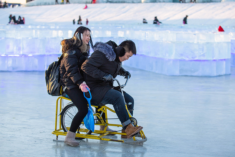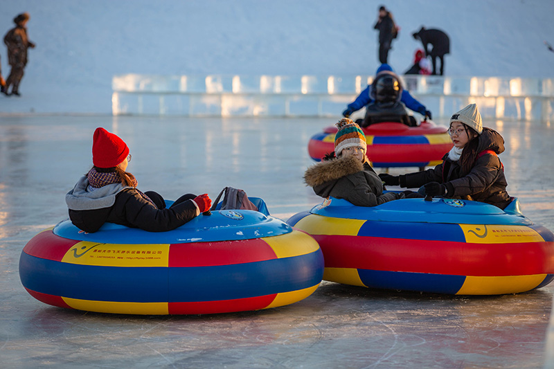 抽冰尜、白冰车、红冰车、冰上十二生肖、冰爬犁……20余种冰上娱乐项目让游客充分体验冰雪魅力。极速大滑梯是哈尔滨冰雪大世界王牌娱乐项目,今年滑道增加到6条;雪圈设计了单人、双人、三人、四人、六人、儿童等15条不同类型的道;为爱滑冰、爱滑雪的游客免费提供冰鞋、滑雪板,为游客呈现一个看得震撼、玩得尽兴的冰雪乐园!