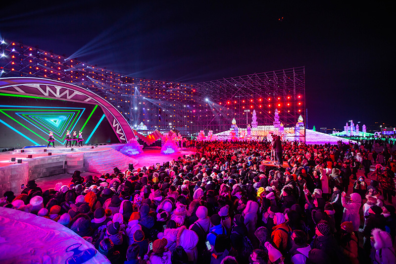 这里不仅有璀璨夺目的冰雪景观,还有哈冰秀、冰雪艺术宫--弦乐演奏、室内儿童剧、暖心玩偶剧、梦想大舞台的“左右哥”、“万人兔子舞”,浪漫冰舞台的冰上华尔兹、花样滑冰等冰上艺术,极限飞球动感6D影院等3000多场国际范儿十足的免费精彩演出,让游客应接不暇、惊喜万分。