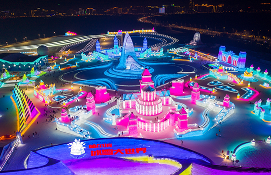 今年哈尔滨冰雪大世界用20多万立方米的冰和雪,打造出世界最大的冰雪主题公园。汇聚历届精粹,创新全新盛景,冰雪之冠、世纪之钟、光之旋律……21个冰雪景观群