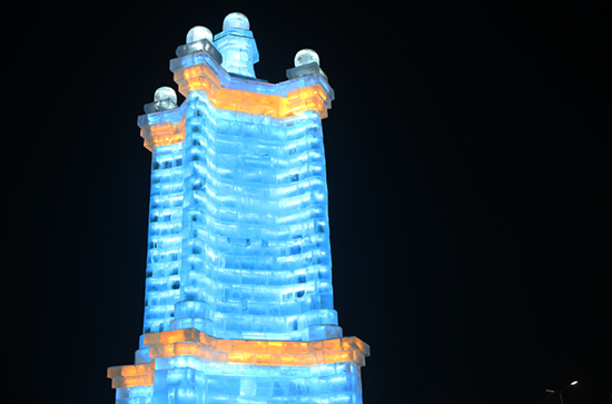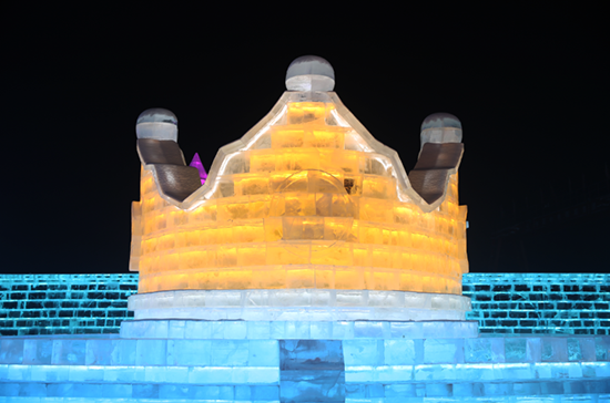 一顶冰建“皇冠”稳稳地坐落在浪漫冰舞台的旁边,闪烁着迷人的光彩,象征着哈尔滨冰雪大世界是中国冰雪游当之无愧的“无冕之王”。