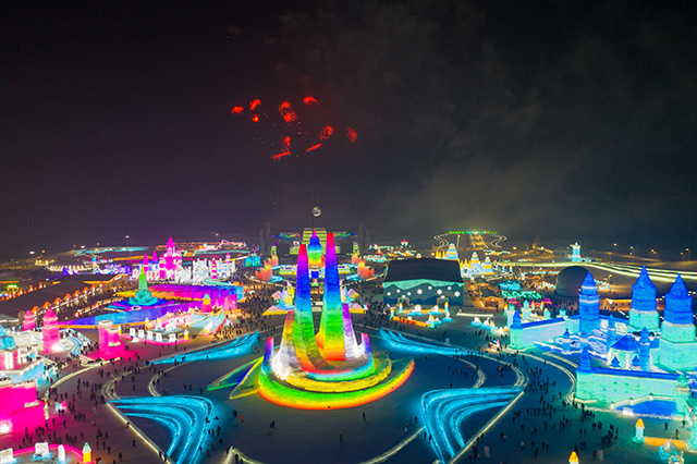 (哈尔滨冰雪大世界夜景 摄影:王昭博)