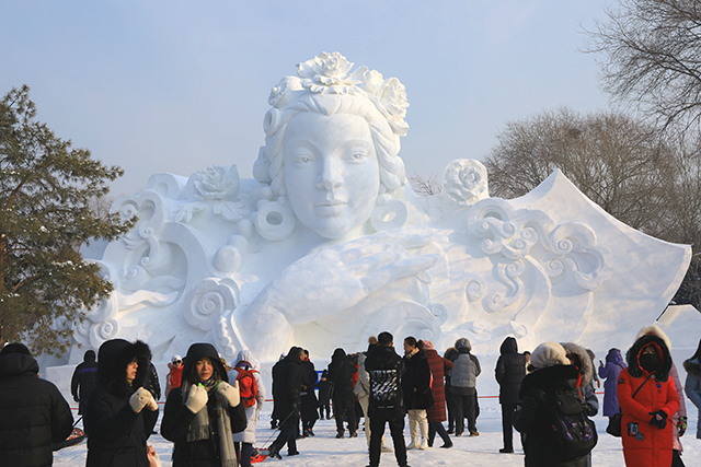 (太阳岛雪博会的主塑“凤姿傲雪” 摄影:冯贤)