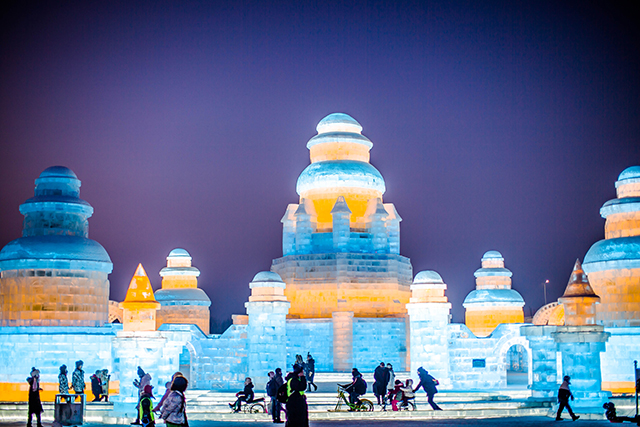 (哈尔滨冰雪大世界的单车城堡 摄影:徐帅)