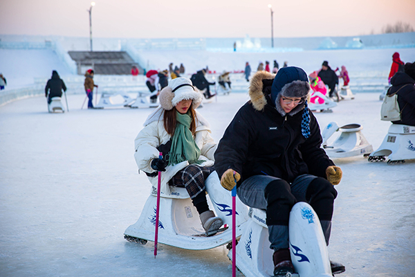 老少咸宜的冰车是绝佳的亲子娱乐项目,冰湖上有抽冰尜、白冰车、红冰车、冰爬犁……家长带领小朋友玩抽冰尜、冰车,既有趣味又有极高的安全指数。