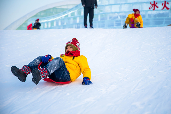 这里除了有冰湖还有雪湖,这里是小朋友欢乐的小天地,小朋友手持小滑板从雪坡上自由滑下,放声大笑。这里定能博得孩子的欢心,家长们一定要带孩子玩玩!