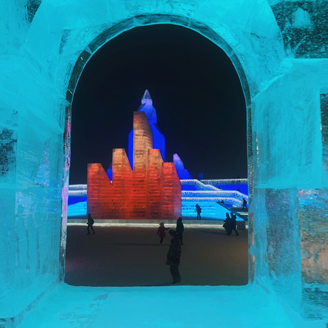 冰雪艺术与灯光艺术完美融合,中西式风格碰撞交融,堆砌成了哈尔滨冰雪大世界独特的气韵,成就了一番熙攘繁华。