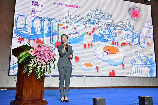 发布会上,来自哈尔滨冰雪大世界和太阳岛雪博会的代表分别就本届园区亮点、特色等做了推介。