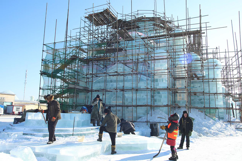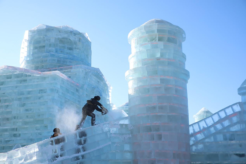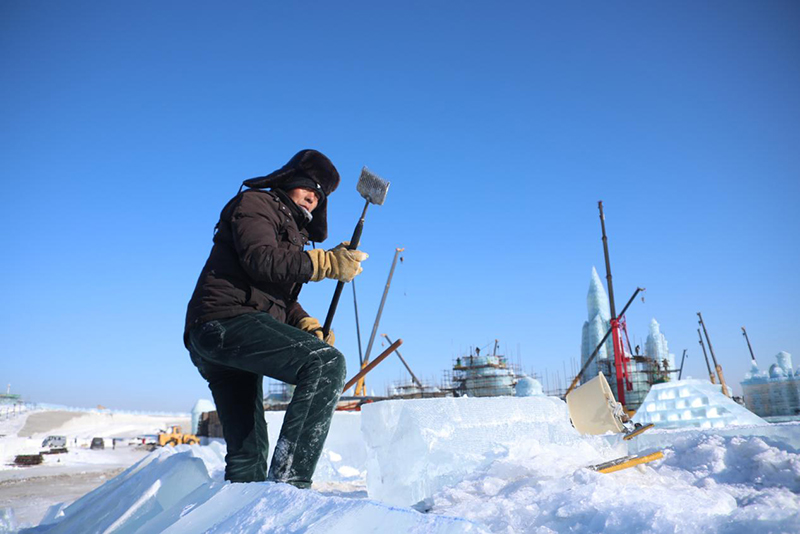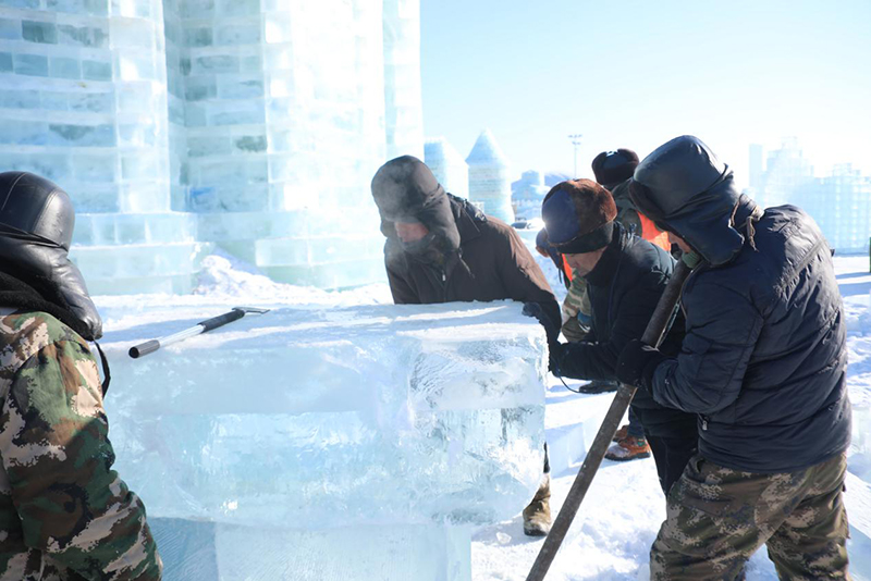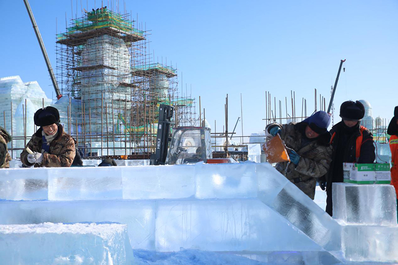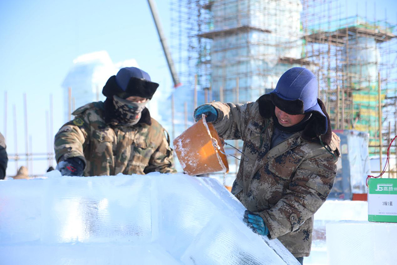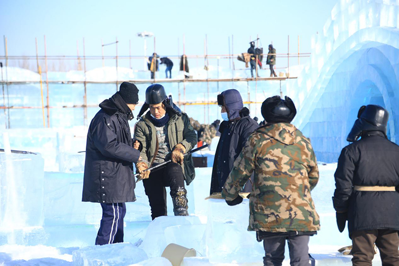 哈尔滨冰雪大世界的建设现场,这近万人施工队伍中包含了电力、特种设备操作工、力工、技工、安全员、工程监理等,各工种紧张有序、按部就班地忙碌着。他们是与时间赛跑的“冰雪匠人”,怀着颗颗匠心,一如既往地高标准、严要求、精雕刻,只为可以准时将这举世无双的美景呈现在世人面前。