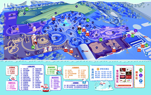 今年园区内,共有商服8处,无论您是累了、冷了、还是饿了,可以第一时间进商服“续命”。两个覆土式700平方米的商服用房,为游客设置了休息区,免费为游客提供姜水、热水驱寒。更有5G信号覆盖全园,让你随时与外地的伙伴分享快乐时光。