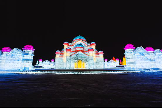 今冬,哈尔滨冰雪大世界通过冰雕艺术,完美展示了俄罗斯叶卡捷琳堡、莫斯科驿站、爱沙尼亚之门、拉脱维亚圣彼得教堂、希腊雅典剧场等来自中东欧国家的经典建筑,让你无须远行,便可遇见世界。