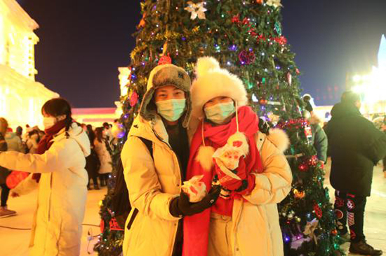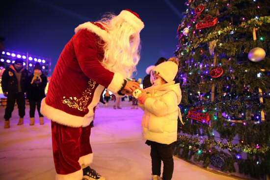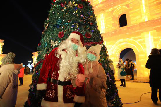 园区内,“圣诞老人”们穿梭于人群之中,与游人互动合影送出具有东北特色的圣诞礼物。在这样一个由哈尔滨冰雪大世界和游人们共同欢度的东北味的圣诞里,比袜子里的礼物更珍贵的是美好的记忆。