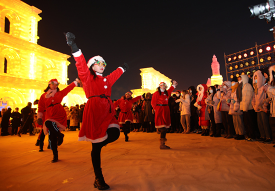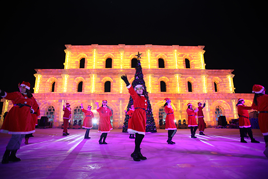雅典剧场旁,一场特别的圣诞“派对”准时开场。舞者们各具风格的舞蹈充斥着青春气息,冰雪景观折射着晶莹的光,游人们汇聚塔下,置身其中被这气氛感染,纷纷举起手机记录下这难忘的一刻。