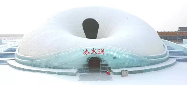 与别处不同的是,哈尔滨冰雪大世界中冰火锅采用了创新性的“黑科技”——冰壳技术建造而成。冰壳技术是一种采用“冰雪复合材料+喷射方式”的先进冰雪建筑技术。