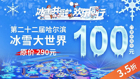 官方门票价:今年哈尔滨冰雪大世界门票在原价290元的基础上进行了3.5折销售,门票折后价100元。