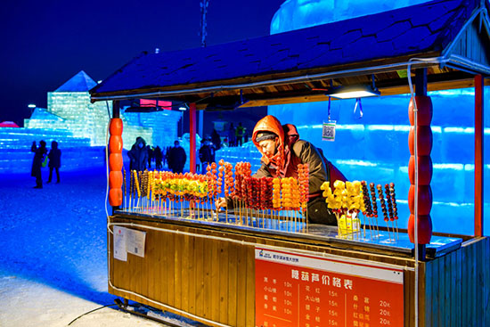 有歌中这么唱道“都说冰糖葫芦儿酸,酸里面它裹着甜,都说冰糖葫芦儿甜,可甜里面它透着那酸……”,冰糖葫芦是深受北方人喜爱的街边美食,它们给单色调的冬涂抹出一束束火红,给萧瑟冷寂的日子增添了些许温柔。在哈尔滨冰雪大世界园区内,你可以看到古香古色的亭子,那里也许会藏着惊喜哦。