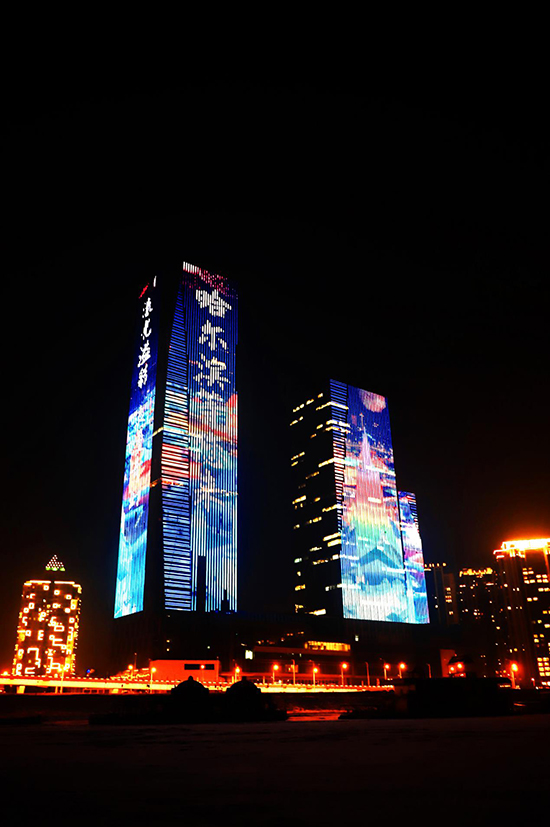 哈尔滨冰雪大世界醒目直观、色彩鲜明、设计新颖的户外视频形式,格外引人注目。