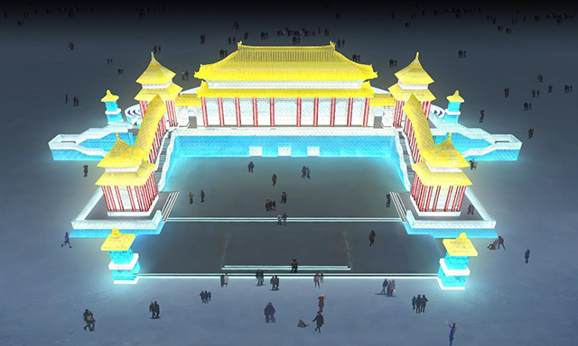 在冰建和雪塑的设计上,冰雪大世界将2022年北京冬奥会与冰雪文化元素相结合进行创作,采用松花江的天然冰体讲述冬奥故事,深度还原曾经冬奥会举办国的经典建筑,借冰建的声光动感展示冬奥魅力,为游客打造一座冬奥主题的冰雪乐园。
