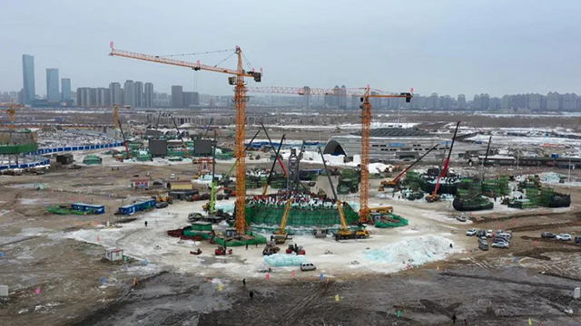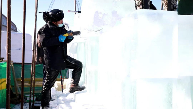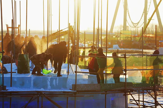 据了解,因疫情防控需要,保障所有人的健康安全,哈尔滨冰雪大世界今年将园区施工人数缩减到了2000人。为保证第二十三届哈尔滨冰雪大世界如期营业,园区建设者们发扬哈尔滨城市精神,用拼搏和信念“加速度”,在安全的前提下,昼夜接力赶工期建造冰雪王国,不辜负市民和游客的支持和期待。