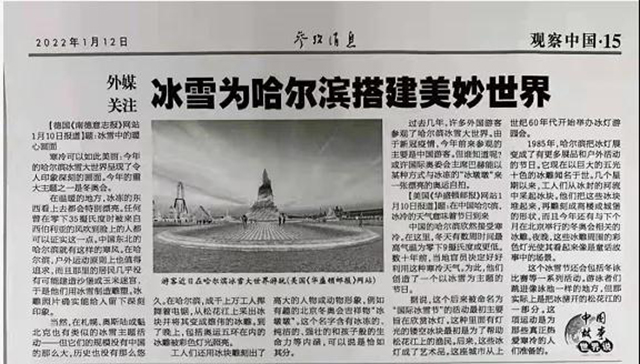 外媒赞叹:冰雪为哈尔滨搭建美妙世界