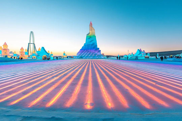 延续这段“冰雪奇缘”,每年冬天,“冰城”都会诞生一座美轮美奂的“冰城堡”——哈尔滨冰雪大世界,阳光下晶莹剔透,夜色下五彩斑斓。