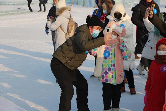123,茄子!进入园区,先合个影,用镜头定格下冰雪大世界里绽放出的最美笑容!
