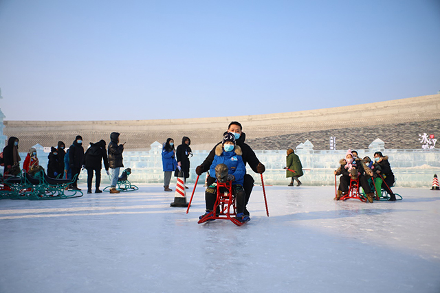据悉,此次挑战赛共设置三个关卡,分别为冰上飞车、亲子雪圈和速度激情。每一关都需要儿童和家长共同完成挑战,按成绩排名获得相应积分。最终将各关卡积分累加,决出一、二、三等奖。欢乐、热闹的比赛氛围,不仅让儿童和家长乐在其中,也吸引了游客加油助威,为冰雪大世界增添了一道亮丽的风景线。