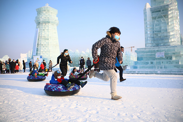 1月23日,哈尔滨冰雪大世界“雪国列车大挑战”第二期活动在园区内火热开赛。由儿童和家长组成的30多个参赛家庭,乘坐“雪国列车”前往各个关卡,向奖品发起挑战。
