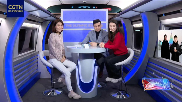 2月3日,CGTN俄语部冬奥特别节目《搭乘5G冬奥列车 共享冰雪盛宴》正式播出。节目中,俄语部记者邀请到乌兹别克斯坦国家通讯社Daryo.uz的驻京记者以及来自哈萨克斯坦的同事,共同乘坐5G冬奥列车,体验在时速350公里的高铁5G超高清演播室做移动直播
