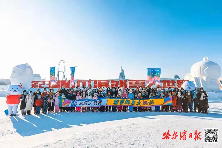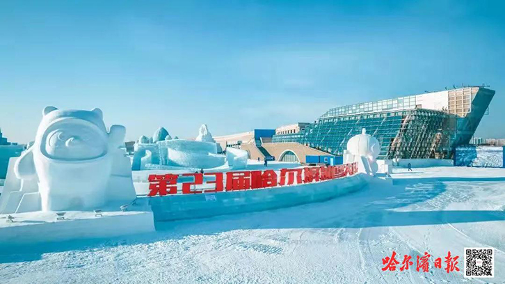 “第23届哈尔滨冰雪大世界”的巨型“横幅”,