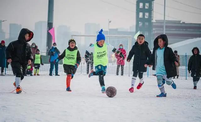 哈市平房区(哈经开区) 冰雪季活动乐园青少年雪地足球赛激战正酣。李海摄