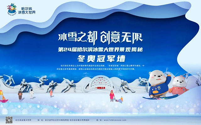 在北京2022年冬奥会上,哈尔滨市运动员任子威、张雨婷、隋文静、韩聪共夺得3枚金牌。为表彰哈尔滨在冬奥会上,为中国体育代表团作出的突出贡献,哈尔滨被中国奥委会授予“奥运冠军之城”殊荣。百米景观“冬奥冠军墙”两侧以雪山飘带为基础,结合哈尔滨冬奥冠军形象设计,中间设置北京冬奥奖牌榜,展现以冰城运动员为代表的中国冰雪健儿用拼搏书写的时代华章。