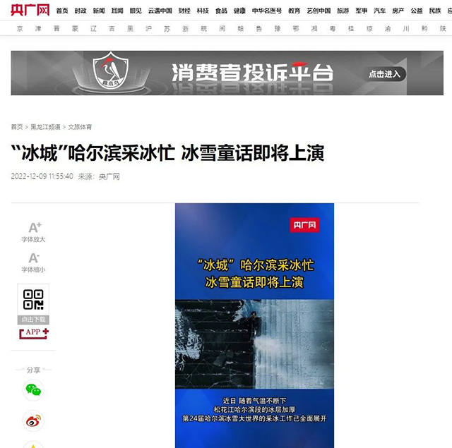 接连报道哈尔滨冰雪大世界采冰