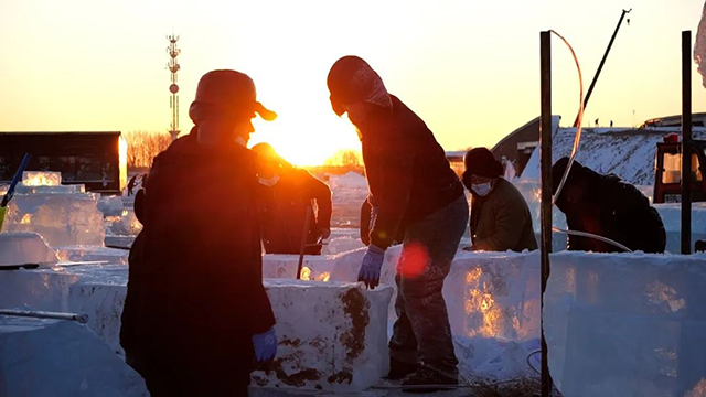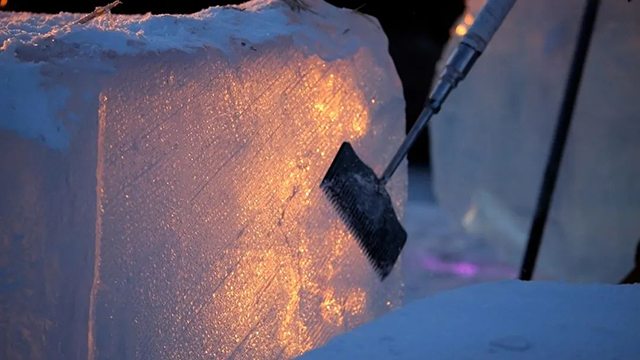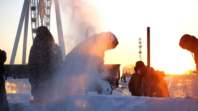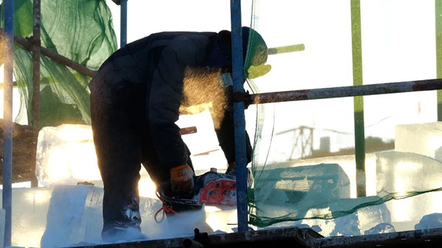 为了呈现最完美的冰雪奇观,各个环节一丝不苟、精益求精。冰建施工期间,众多冰雕、雪雕方面的艺术专家,每天都会来到现场进行指导,无论是冰块切割,还是精细雕刻,都要按照标准进行。