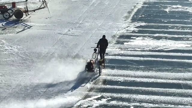 伴着冰锯的轰鸣和飞扬的冰屑