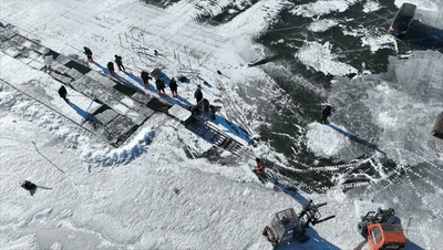 采冰、运冰到冰建施工