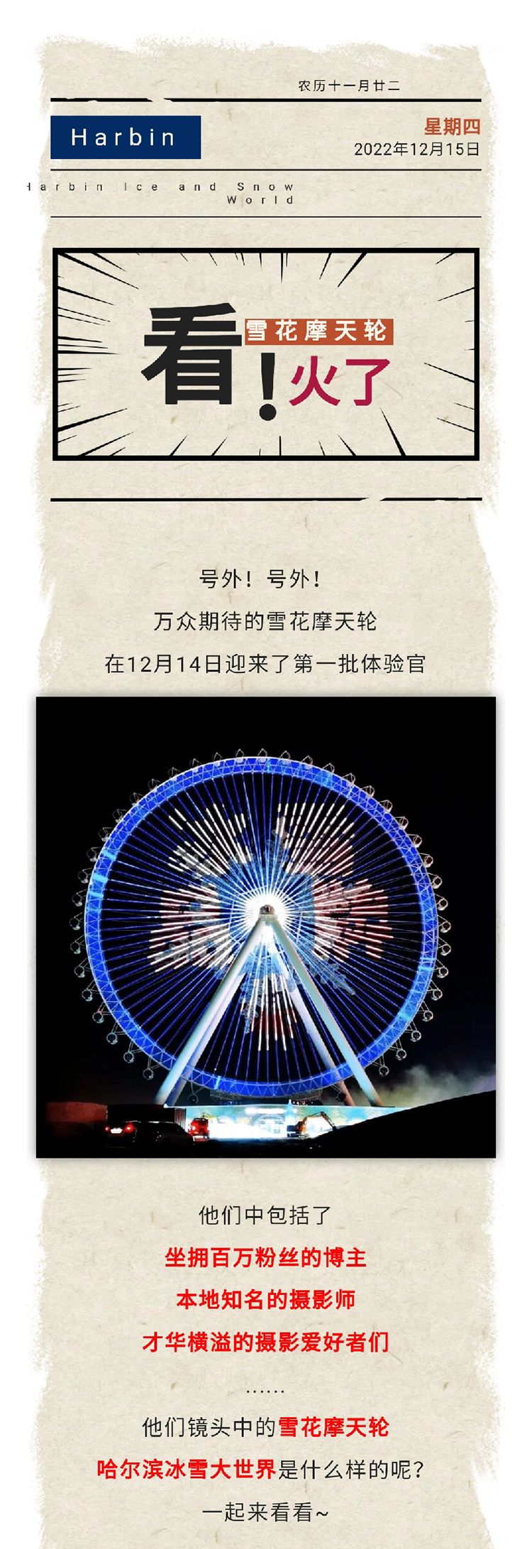 哈尔滨冰雪大世界雪花摩天轮迎来第一批体验官,带你360°打卡冰城新地标!