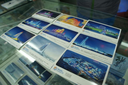 印有冰雪大世界风光的明信片的价格从18元-50元不等,除了冰雪大世界的专属明信片,还有展示哈尔滨建筑和风光内容的多种明信片可供选择。