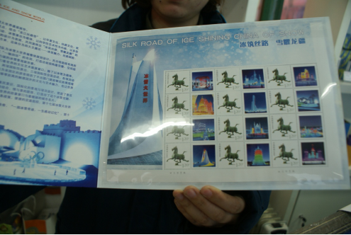 喜欢集邮的发烧友们看过来,冰雪邮局里有第十七届哈尔滨冰雪大世界主题集邮册出售,每张邮票上都有冰雪大世界各个冰雪建筑的美景,颇具纪念价值,价格为100元。
