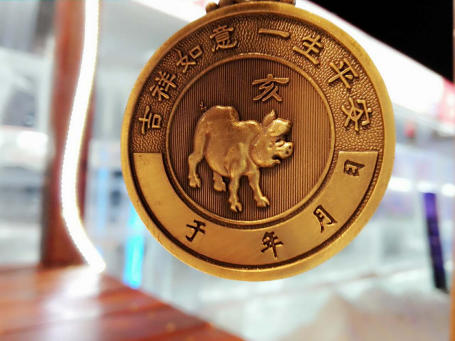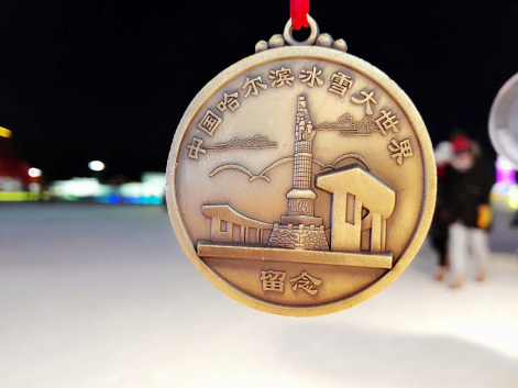 哈尔滨冰雪大世界纪念币销售摊位在景区出口附近,纪念币20元一枚,材料为铜质,一面印有冰雪大世界的图案,另一面是十二生肖图,这是景区专门定制的纪念币,颇有纪念意义。