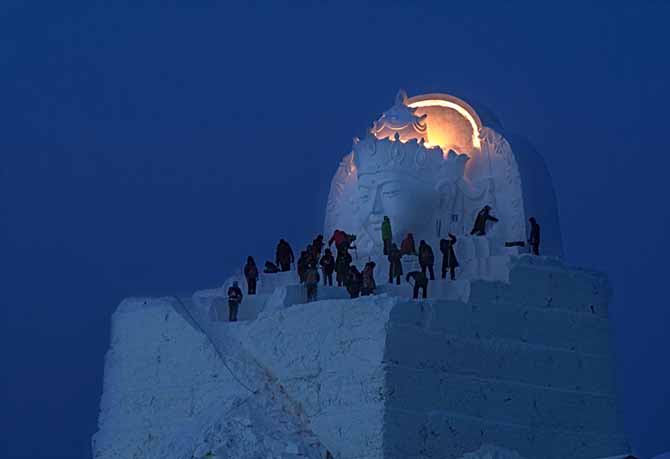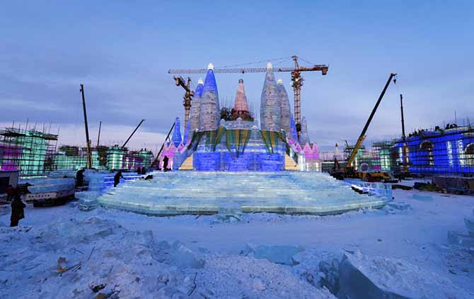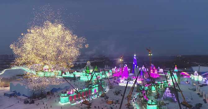(哈尔滨冰雪大世界天坛圣境封顶)