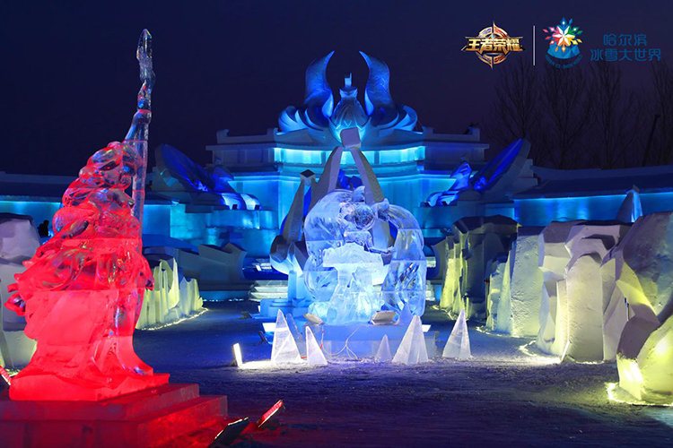 东亚之光的西北侧是今年哈尔滨冰雪大世界最火的一个地方——王者峡谷,里面还有很多的王者荣耀英雄形象和长城守卫军形象、野怪等作战场景,技术高超的冰雪能工巧匠们把他们完美幻化成了冰雪雕,栩栩如生。如果您也是一位电竞粉丝,就可以进去大饱眼福了,在两个阵营中俯瞰作战地图,体验睥睨天下的冲击力!