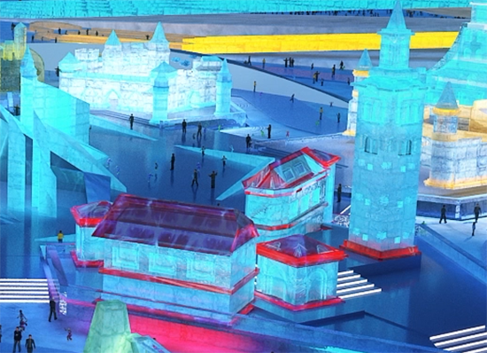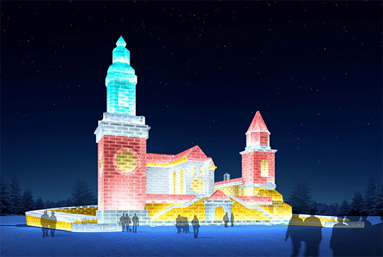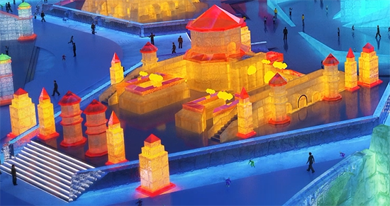 今年,哈尔滨冰雪大世界将在波切尼斯城堡四周围墙上设置互动投光灯,游客可以通过触摸墙壁上的开关变换灯光的颜色,极具趣味性。