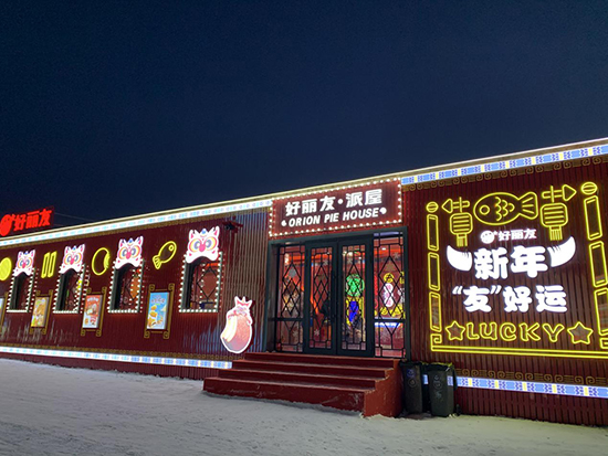 今年园区内设8家商服,都是在全国有50家以上连锁店的商家,品质比较有保障。如果你饿了、累了、冷了,可以选择自己心仪的店家,为自己补给取暖。