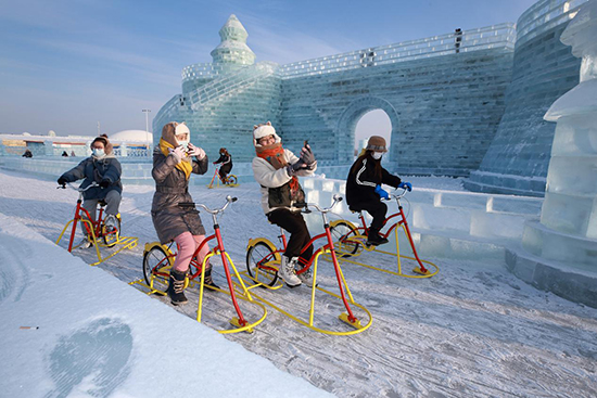 踩着单车去城堡里骑行如何?比如充满异域风情、适合情侣的骑行圣潘泰,在这里你与爱人穿梭城堡之中,共同感受来自零下30度的浪漫。梦想大舞台右侧还有个自行车穿梭城堡,不仅有适合各位拍照留念的冰景雕塑,还特别设计了冰上自行车互动项目,在这里,你可以感受冰上自行车带来的欢乐,畅享玩冰之趣。