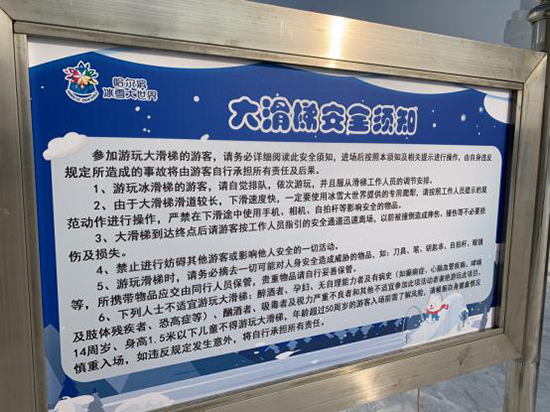 1、园区内冰建景观较多,小心地滑,注意安全,防止跌倒、摔伤等情况发生。