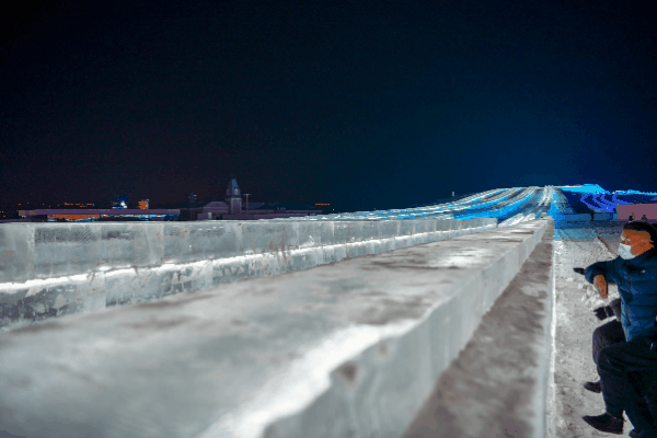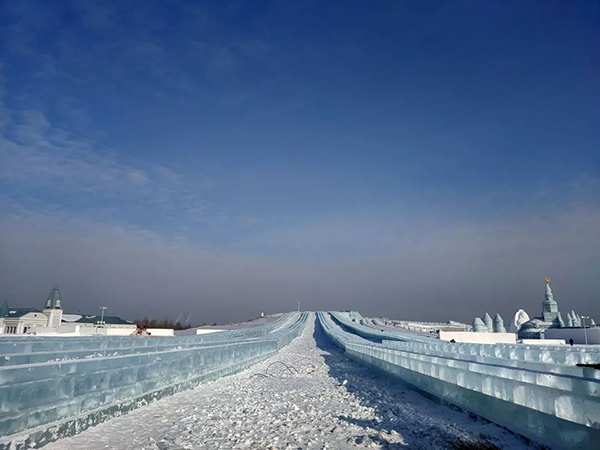 世界上最长的冰滑梯——极速大滑梯是哈尔滨冰雪大世界的王牌娱乐项目。今年的极速大滑梯再次进行了升级,8条冰滑道任你自由驰骋。
