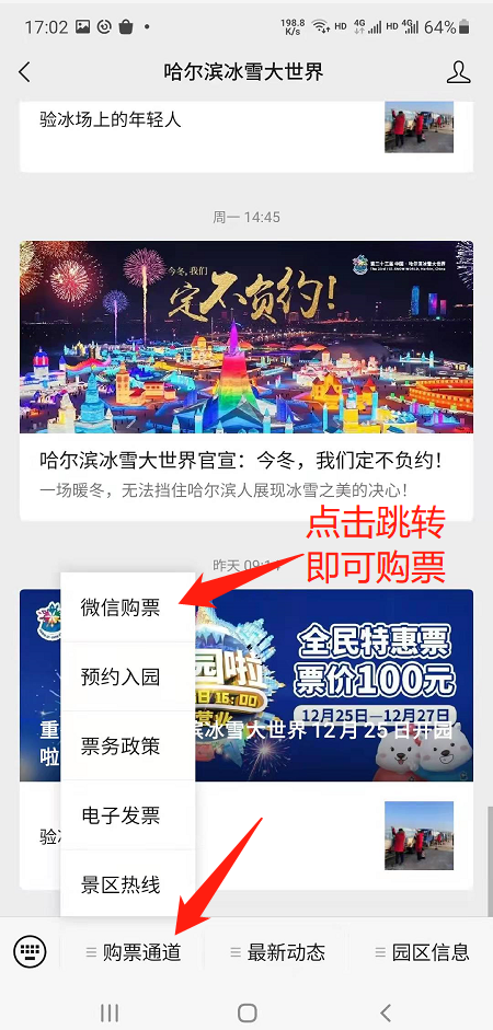 道里区中央大街乘地铁2号线→哈尔滨冰雪大世界